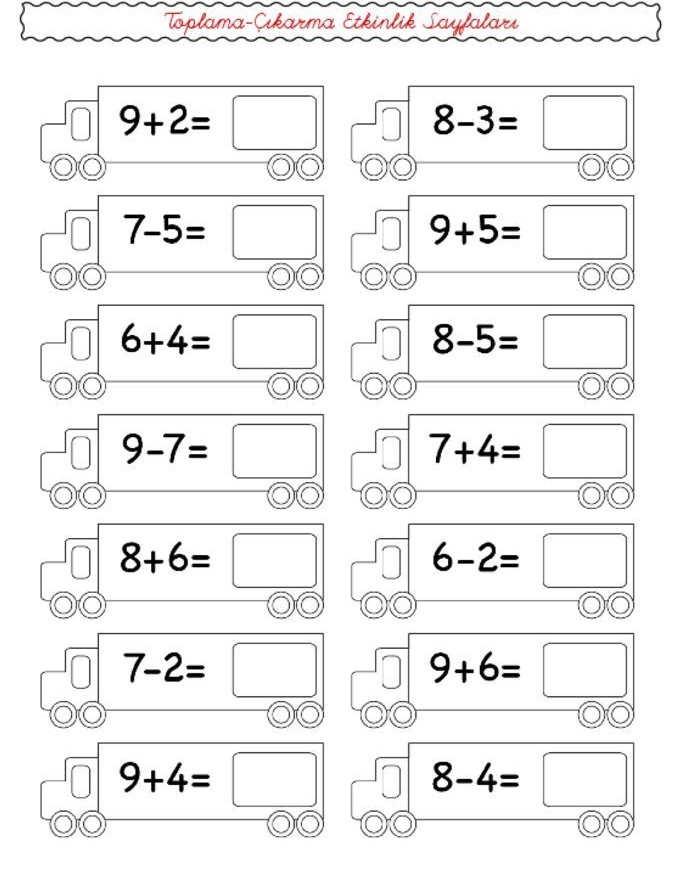 1. Sınıf Toplama-Çıkarma Çalışma Sayfaları